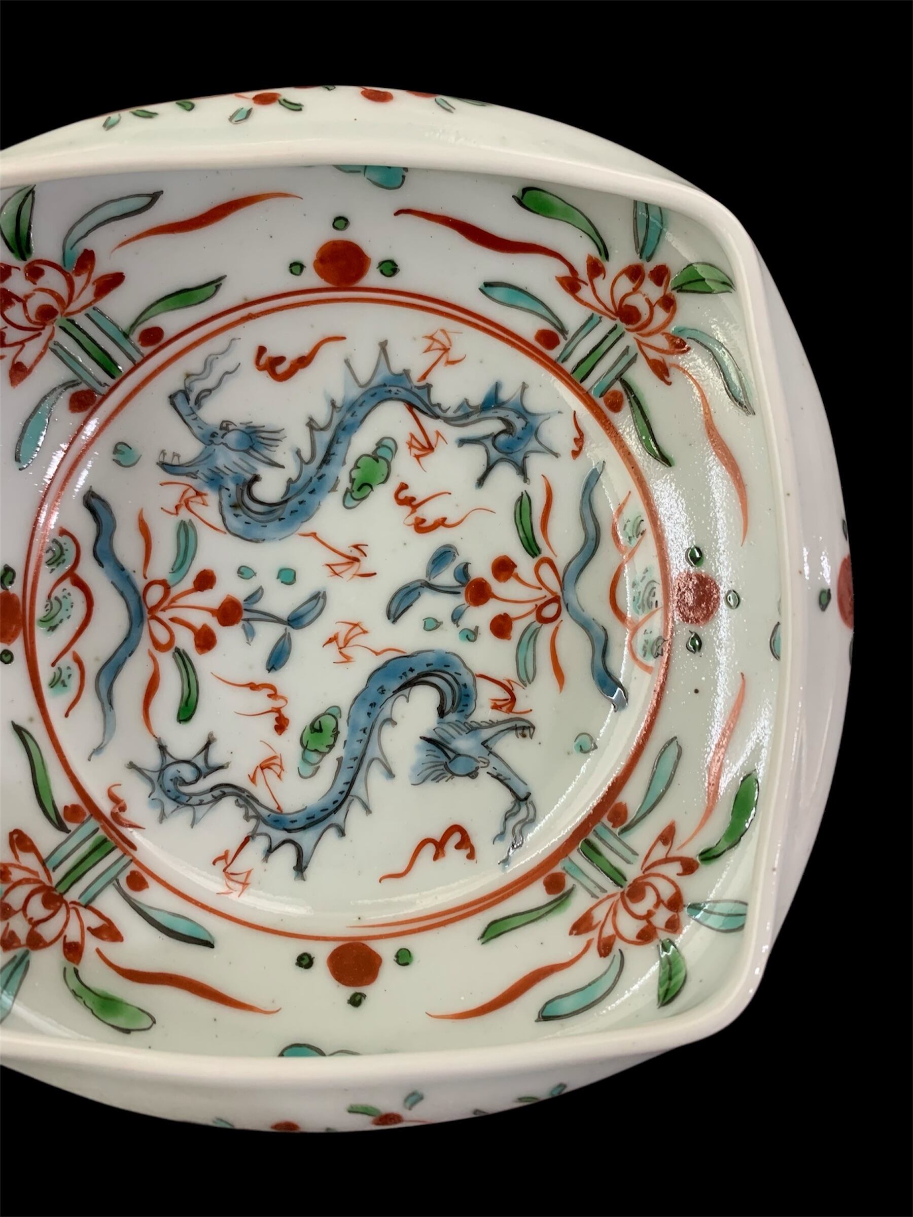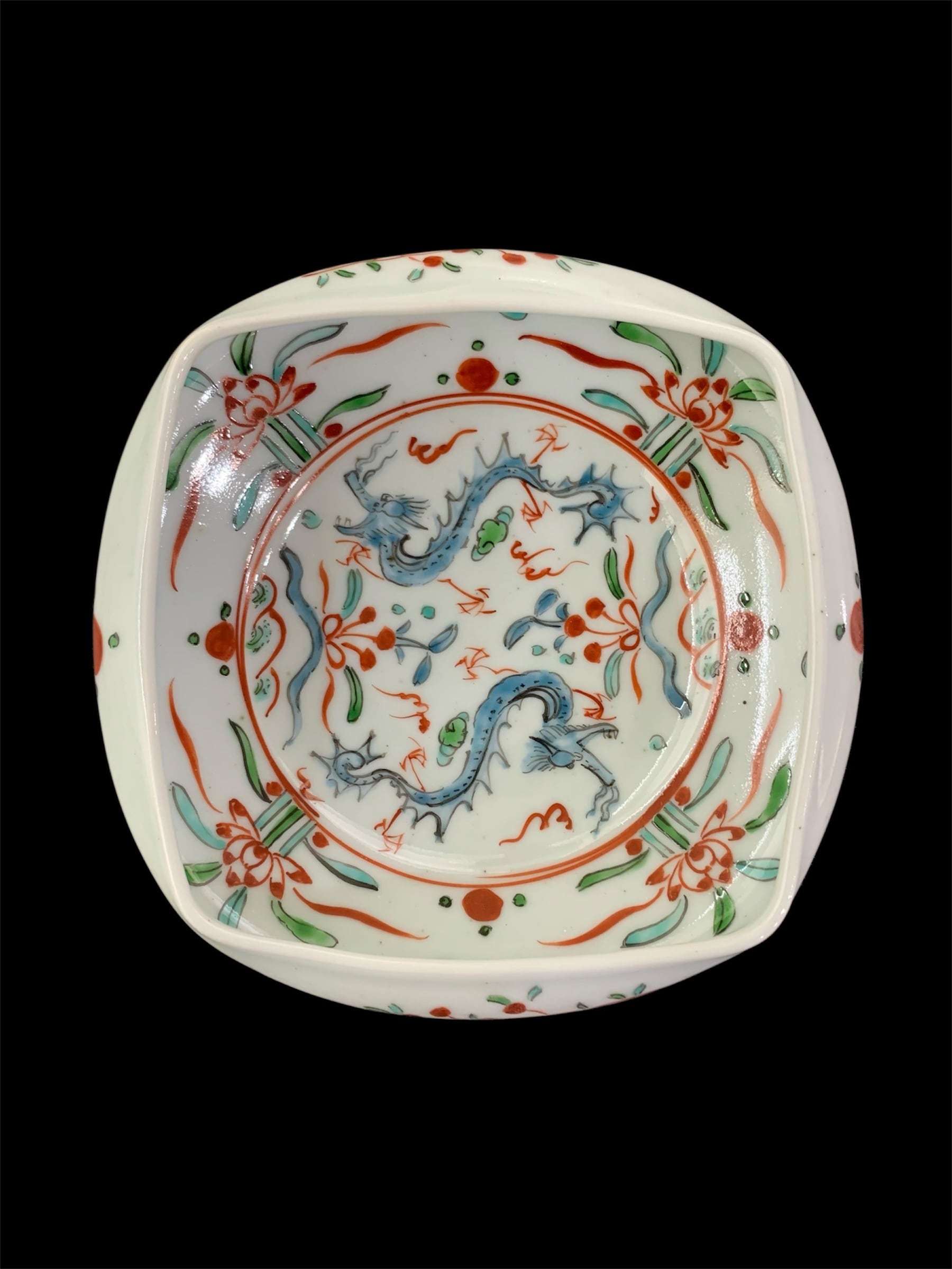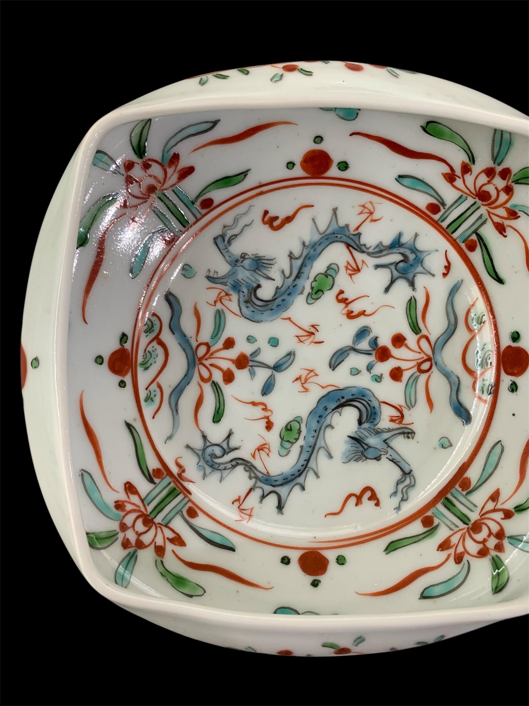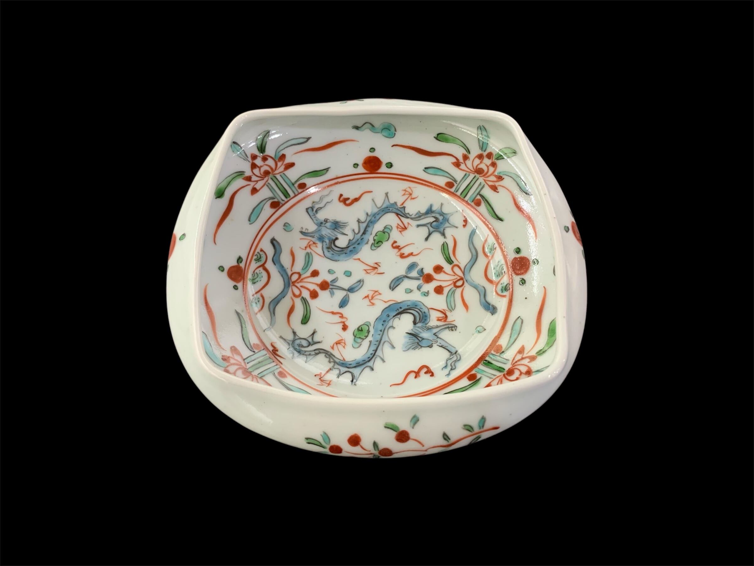 色絵双龍文四方押鉢