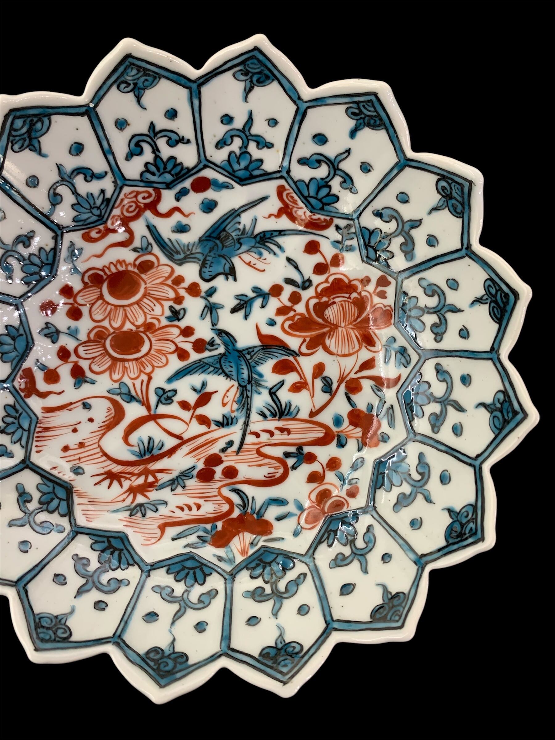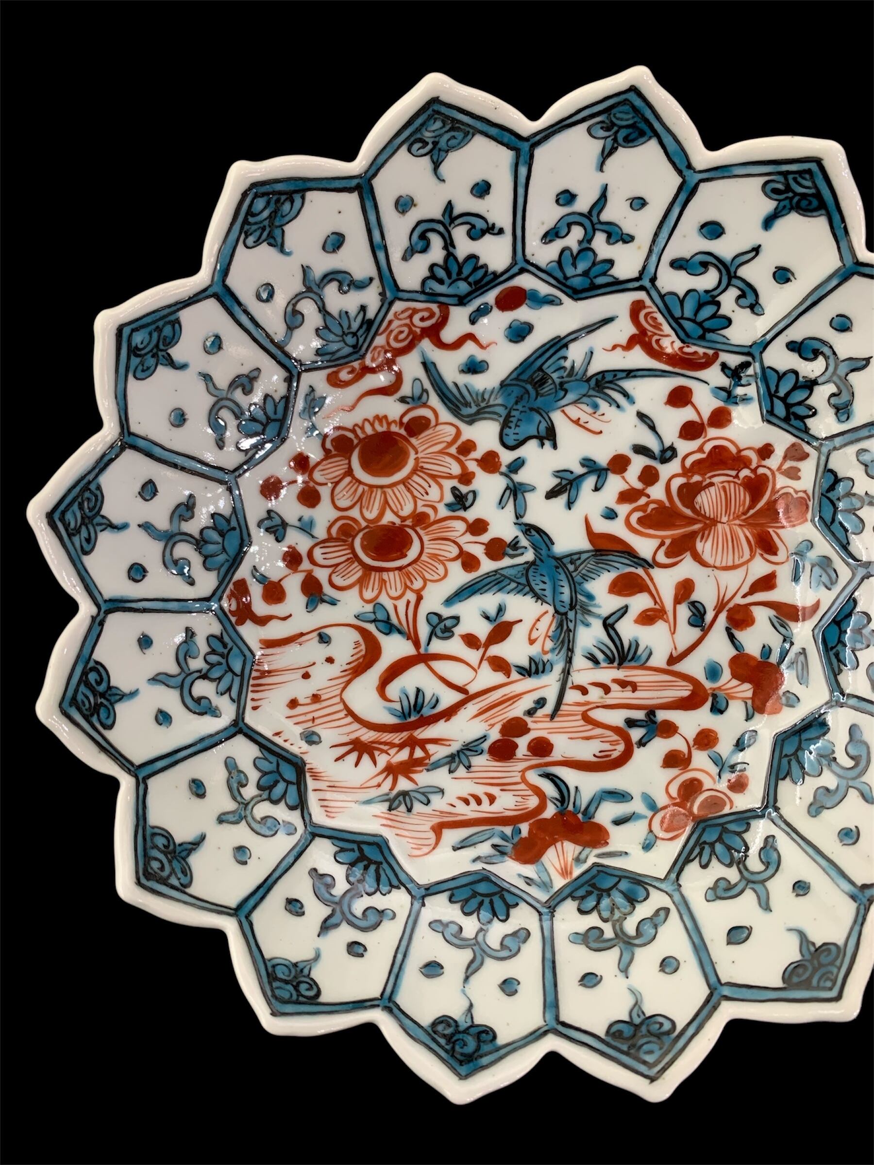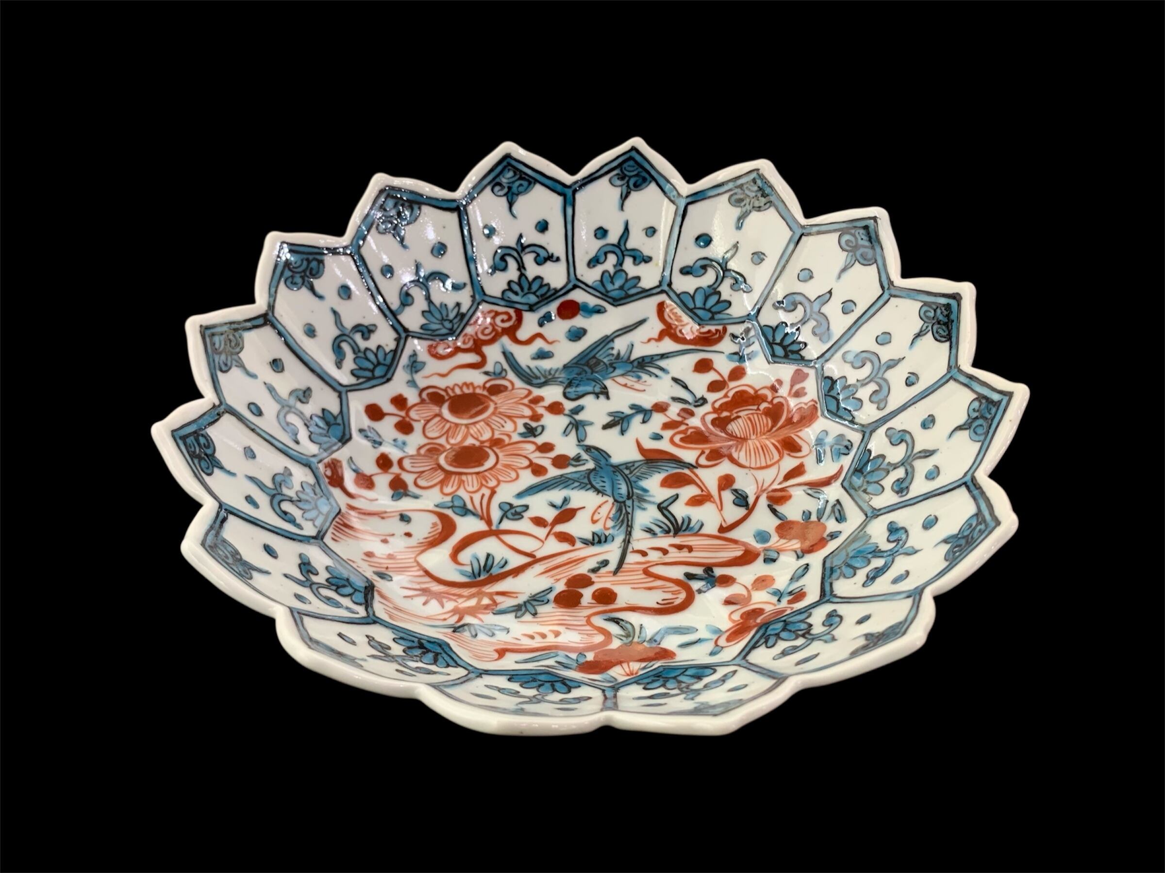 色絵牡丹鳥文蓮葉形六寸鉢