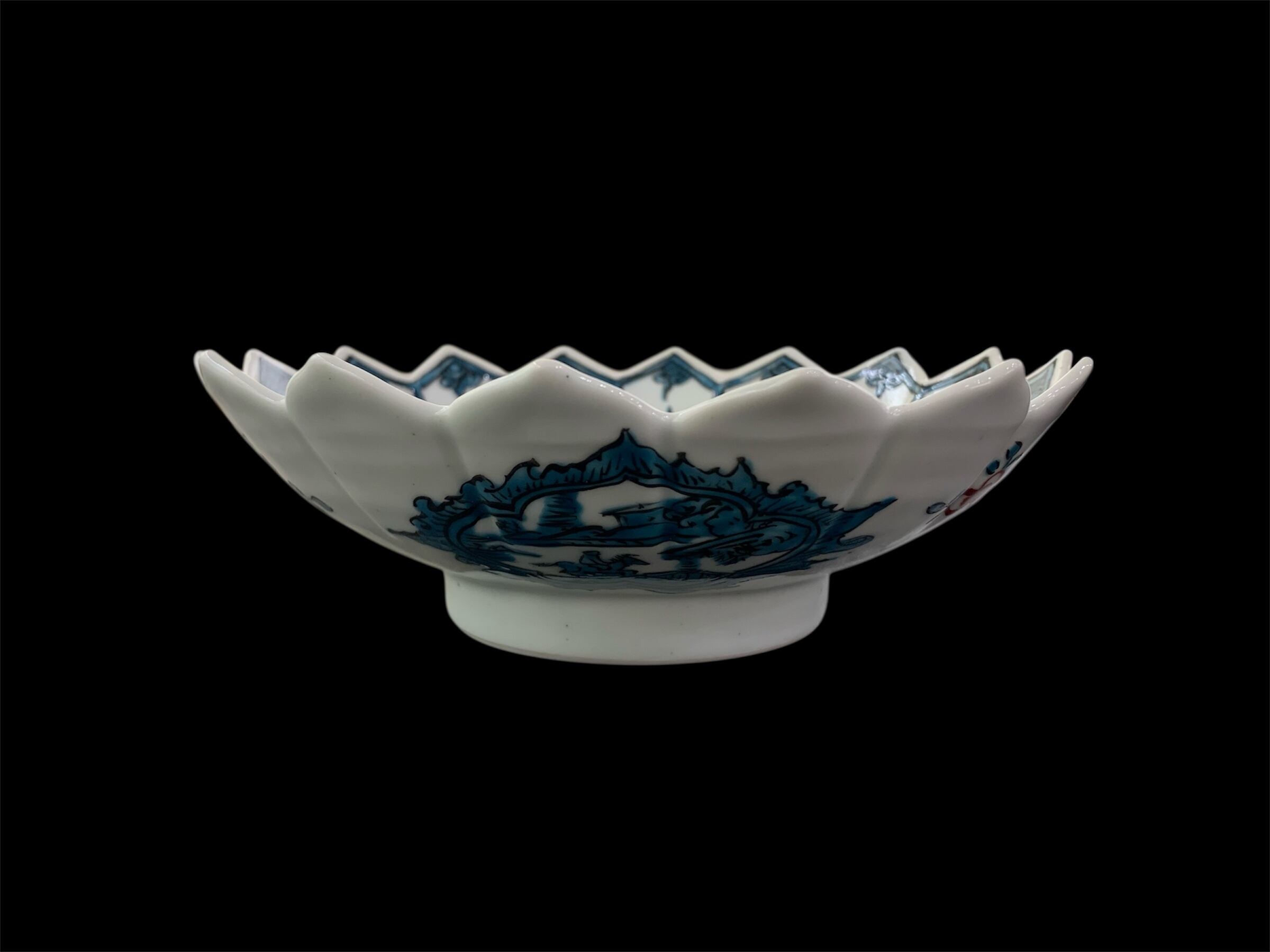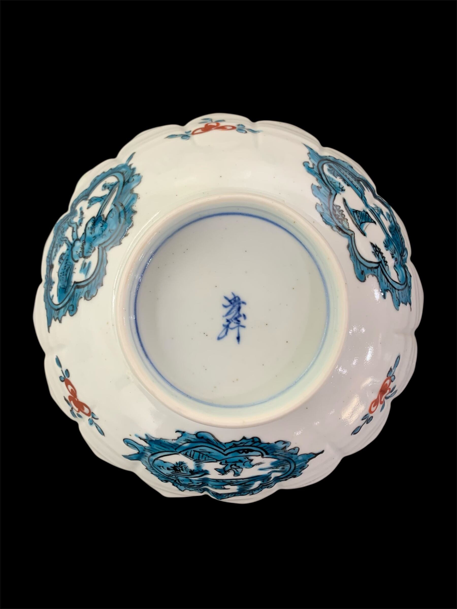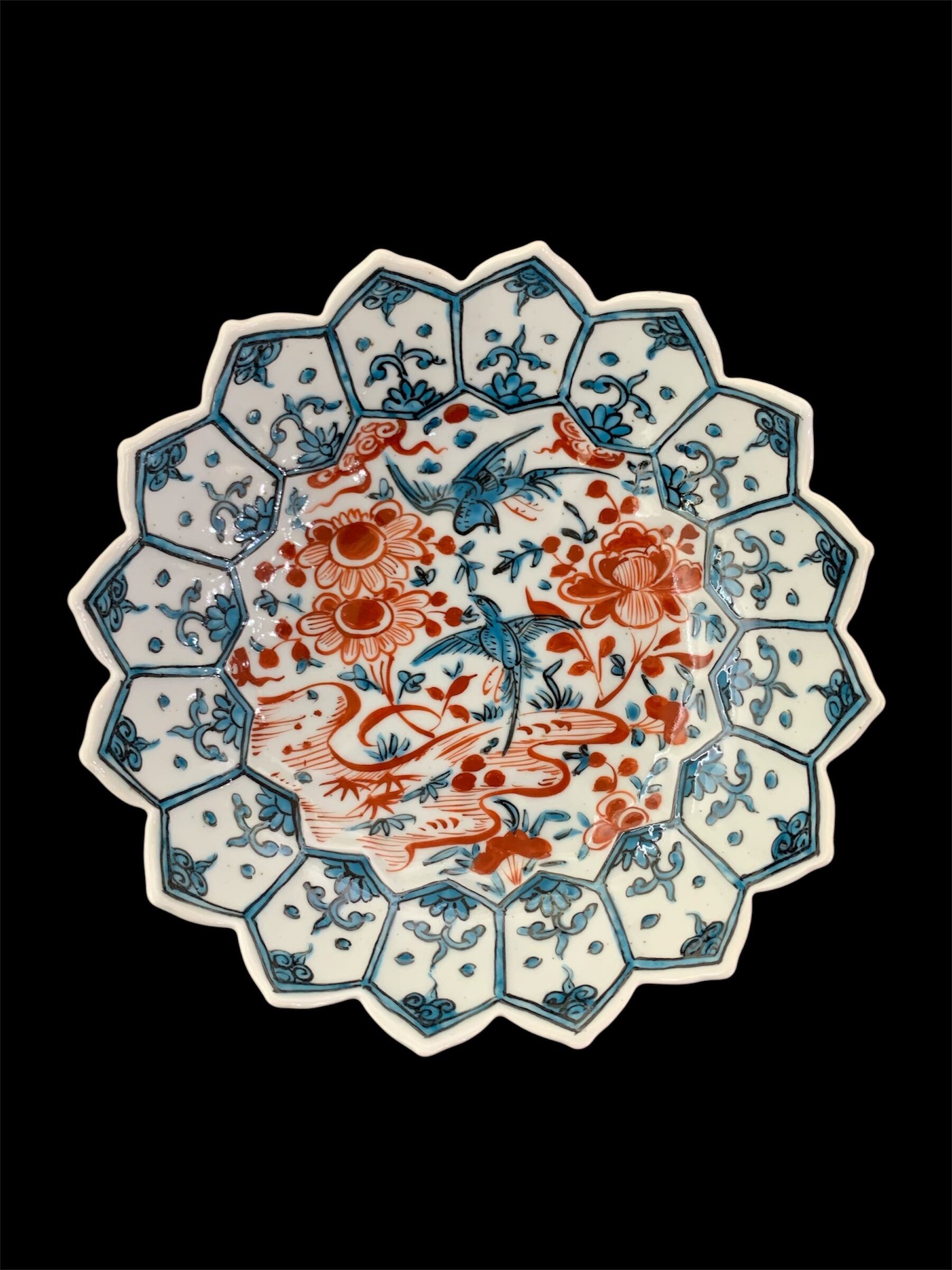 色絵牡丹鳥文蓮葉形六寸鉢