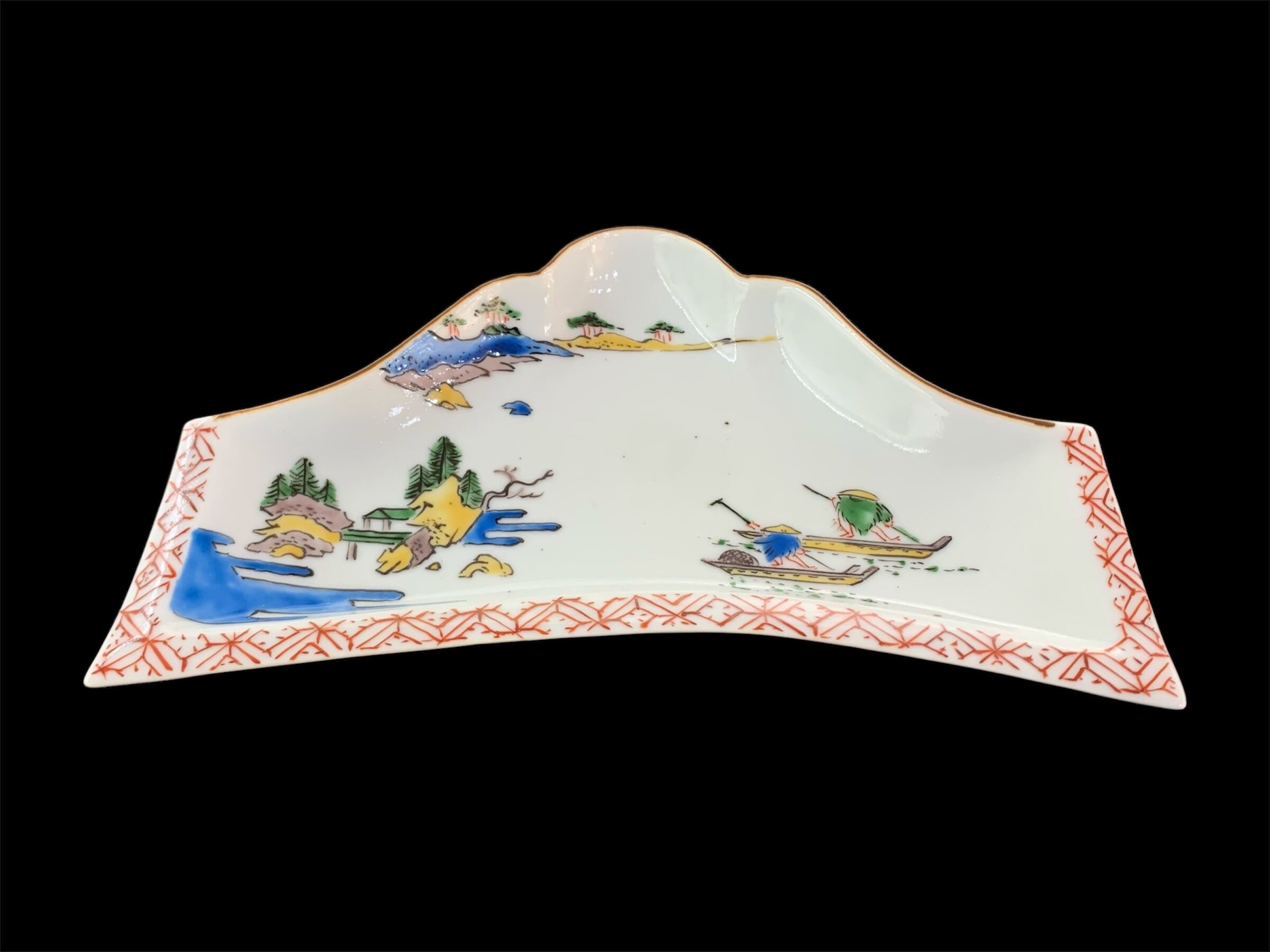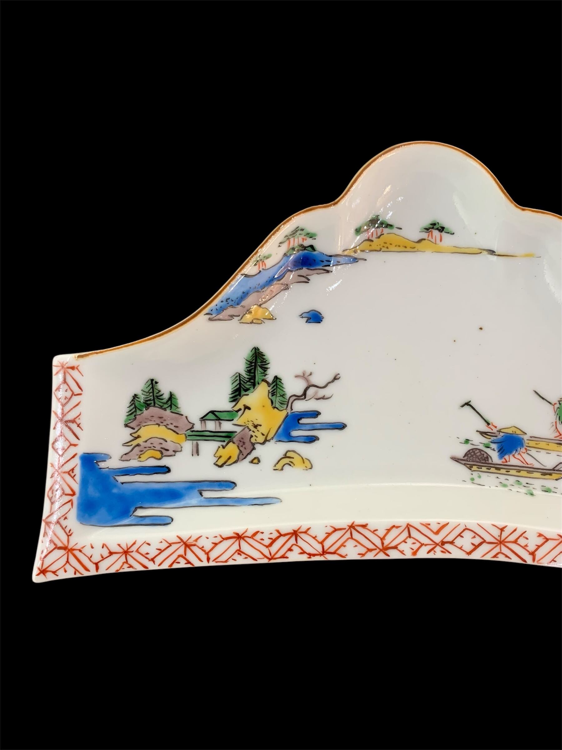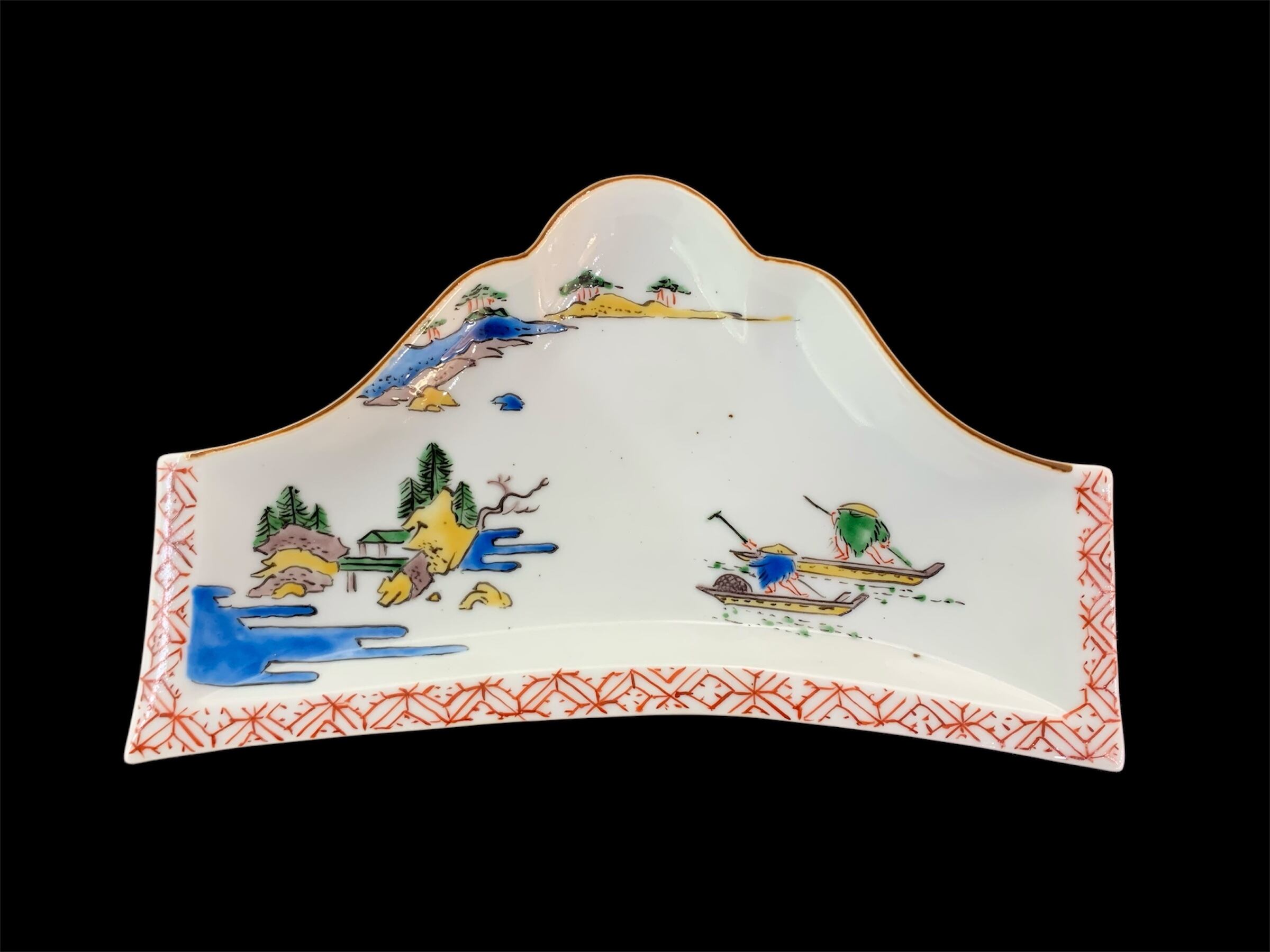 是非、あなたの食卓でこの色絵山水文富士形皿をご活躍させてください。